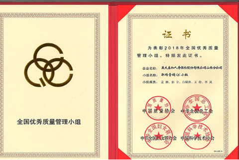 今年以来,山西分公司职场营销QC小组凭借专业专注的研究精神和求真务实的研究成果已经先后获得了“国家电网有限公司2018年质量管理小组成果三等奖”和“2018年山西省QC小组暨班组成果交流会一等奖”两项殊荣。此次获奖,是国内目前质量管理领域的最高奖项,更是近年来全国唯一一家保险公司获得的质量管理方面的荣誉,为今后公司质量管理工作全面开展立下了一个里程碑。